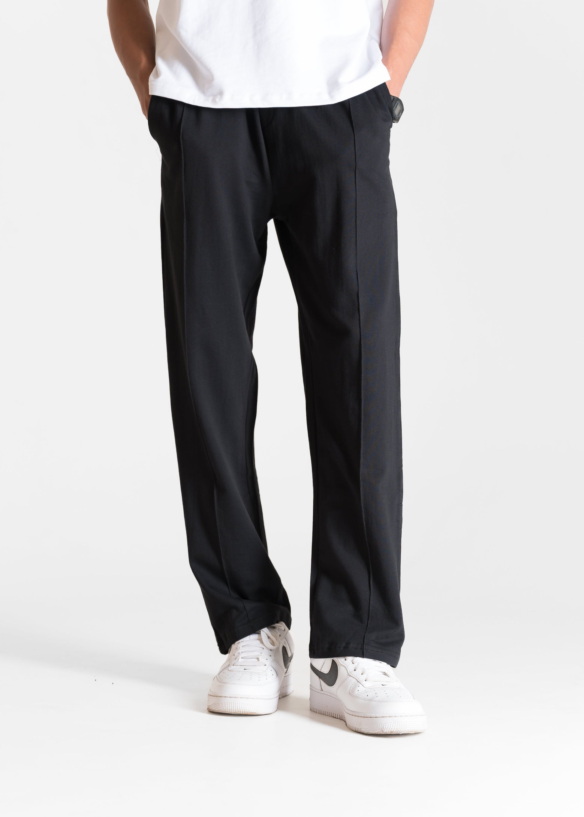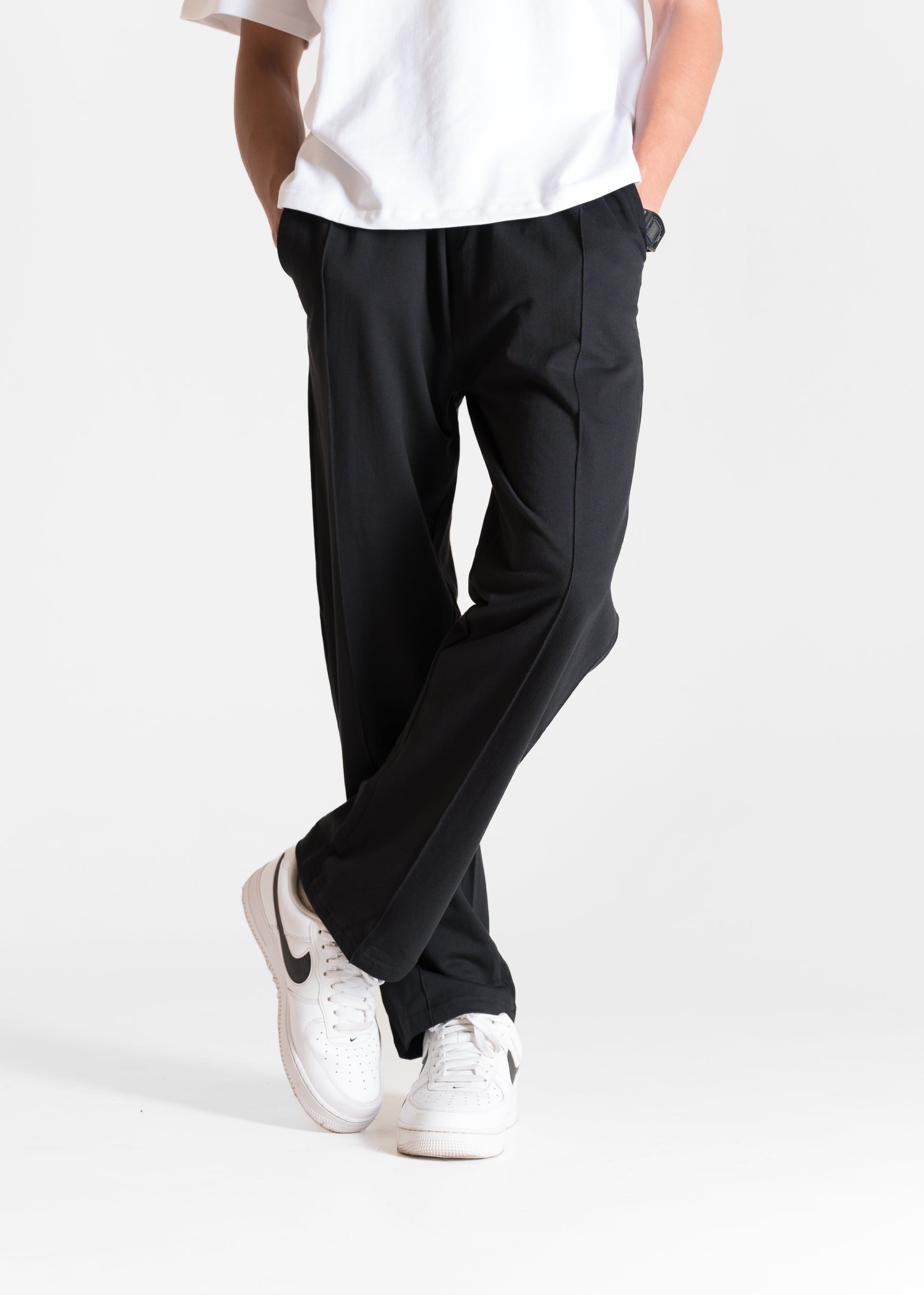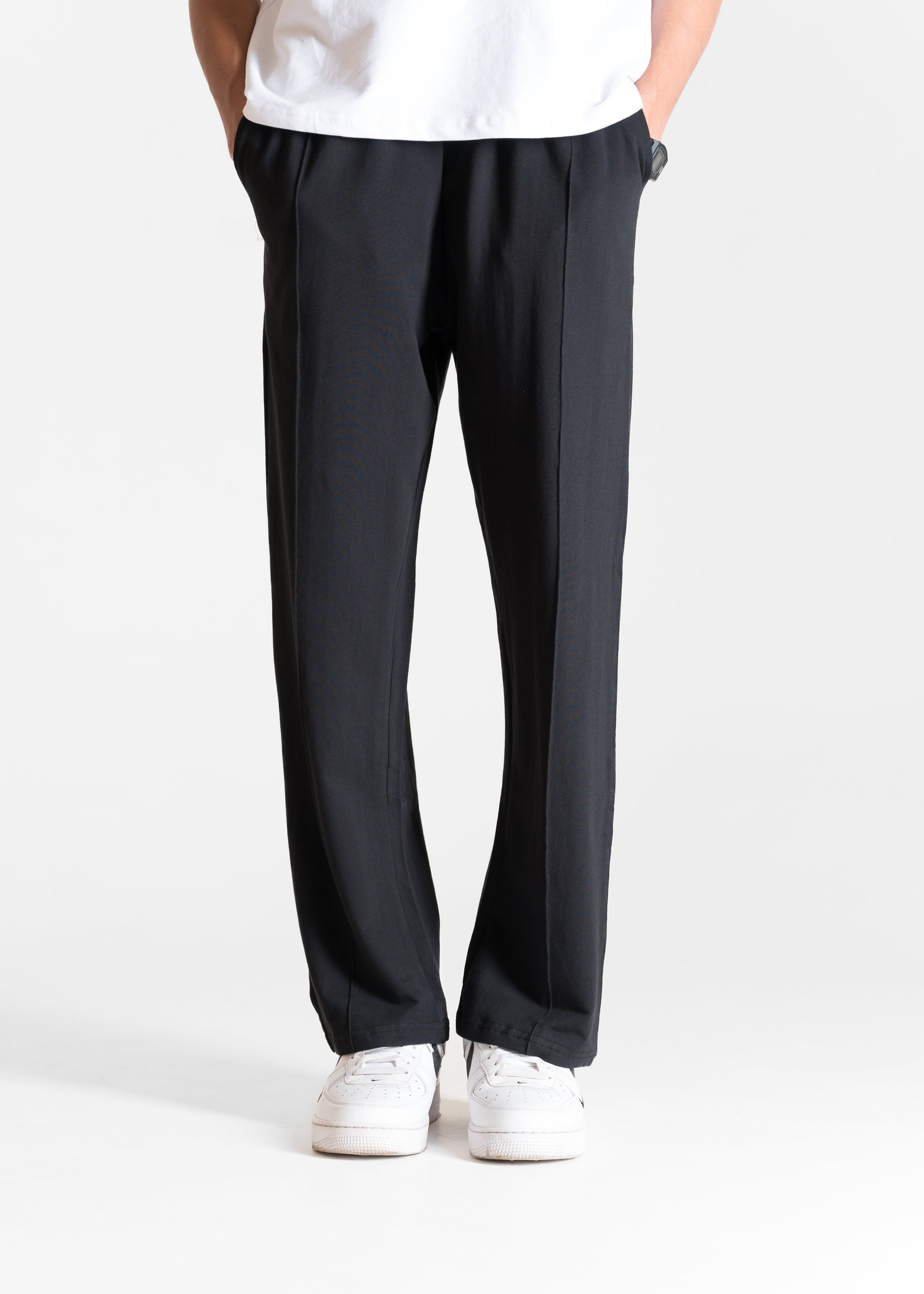 These straight-fit lounge pants, made from breathable cotton fabric, have an elasticated waistband, pockets, and a classic relaxed silhouette. They're comfortable and stylish for lounging, errands, or casual outings.
