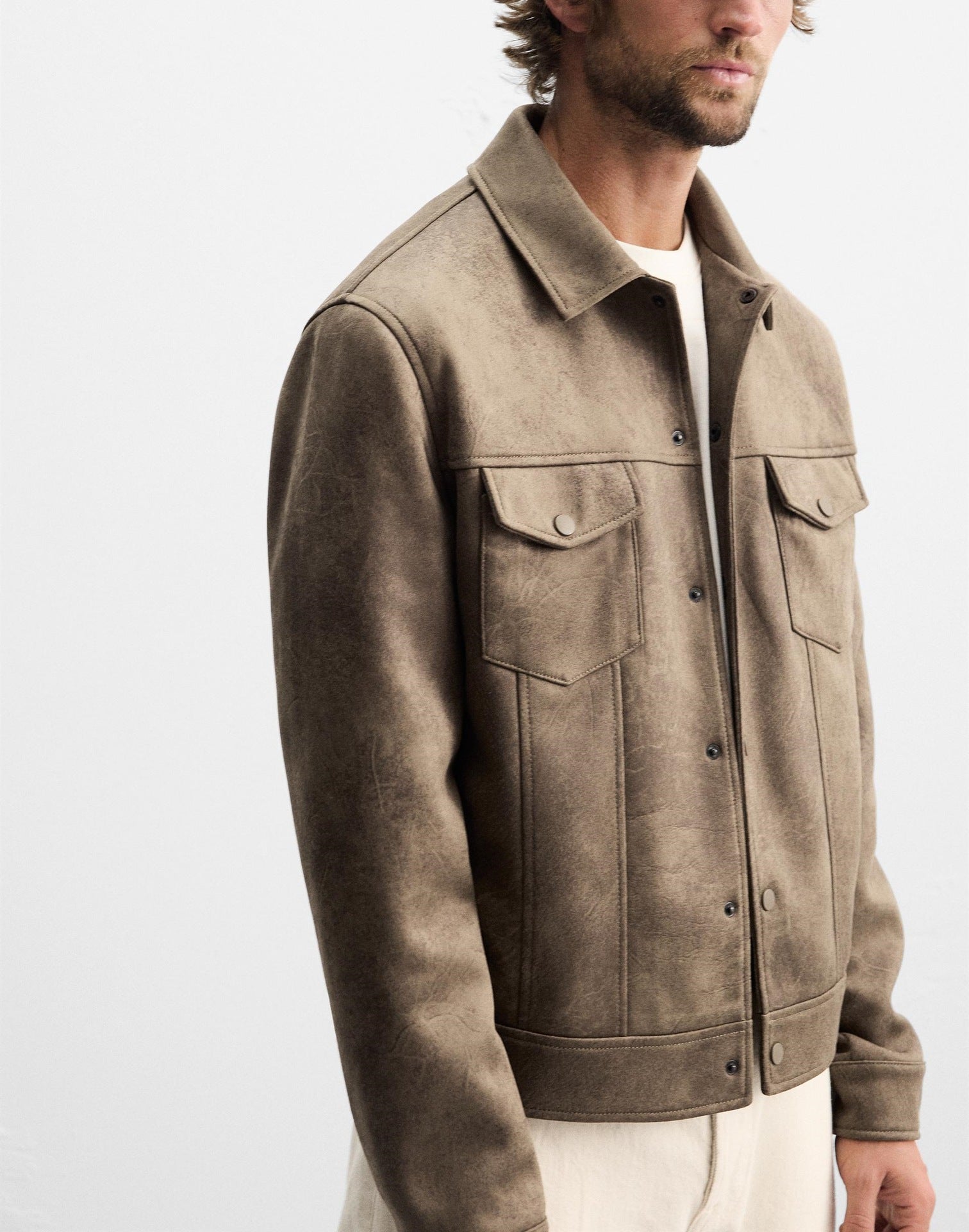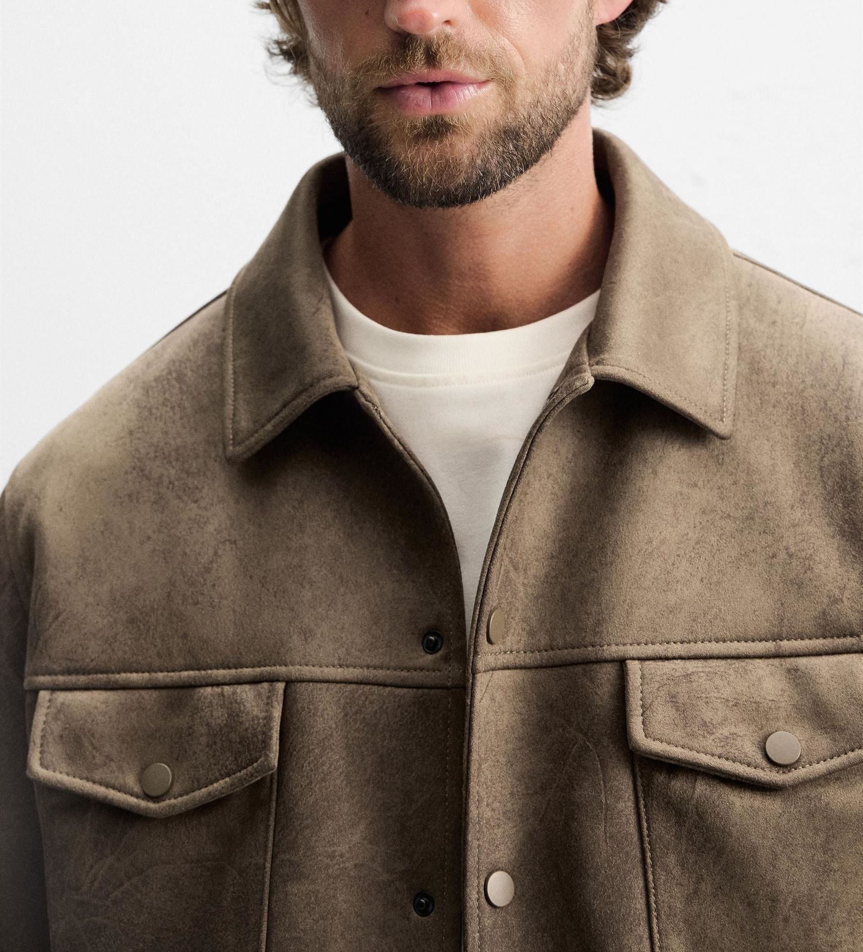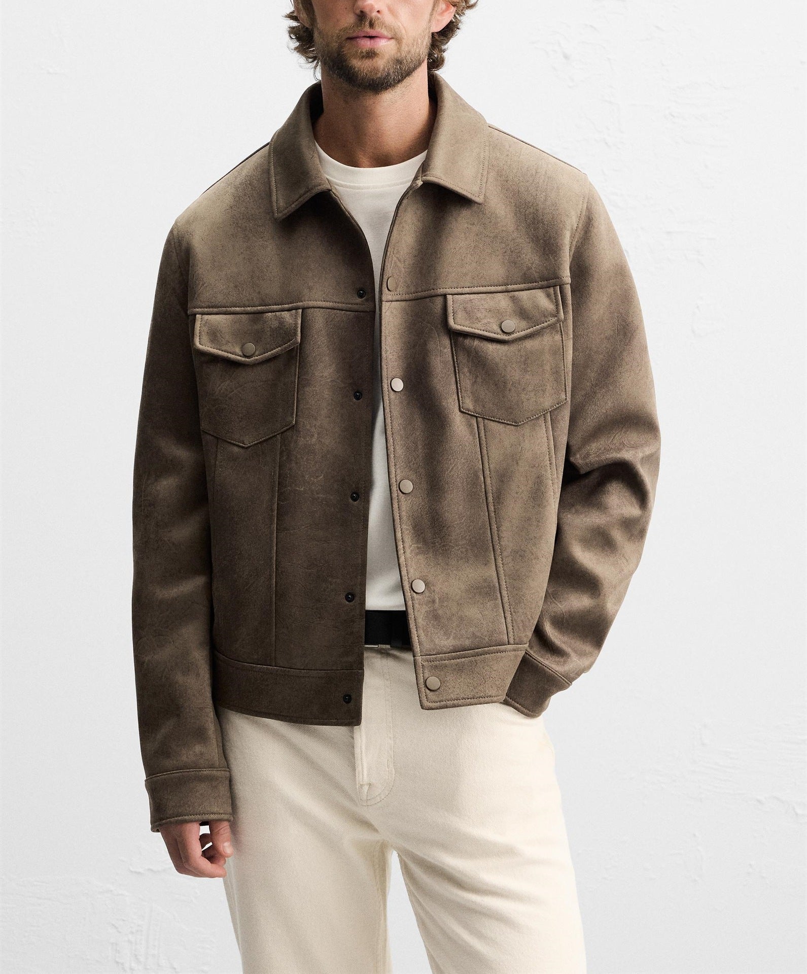 Elevate your wardrobe with this men’s suede cargo jacket, a perfect blend of rugged style and refined design. Crafted from premium suede in a versatile taupe shade, this jacket is both durable and effortlessly stylish, ideal for casual outings or smart-casual occasions.