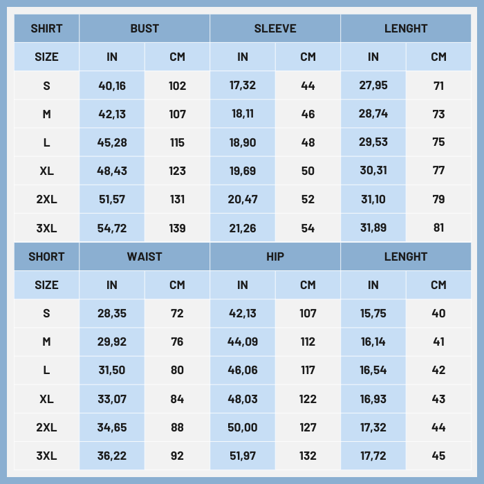 | 58–60 | XXXL | 119–124 | 105–110 | 117–122 |