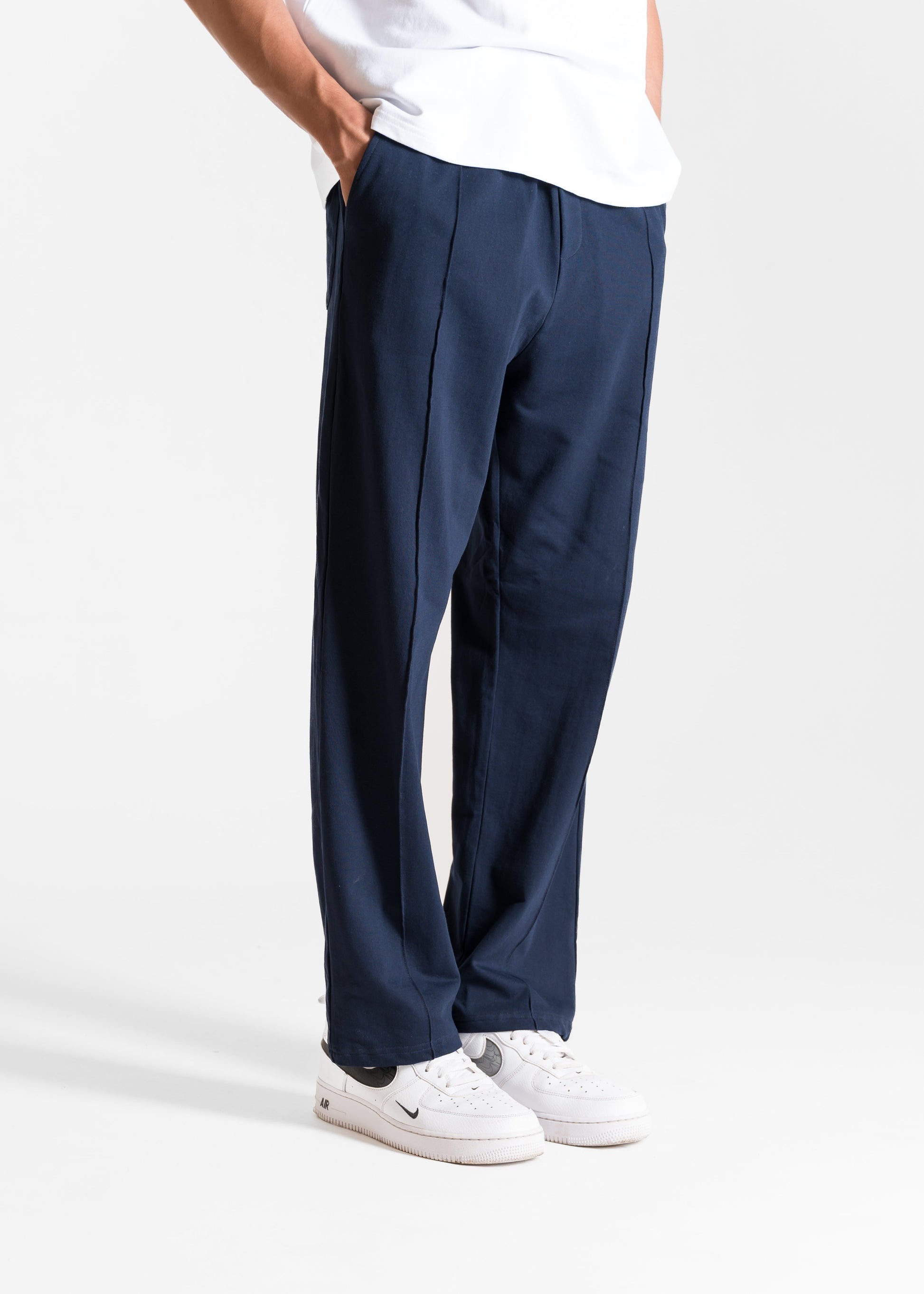 These straight-fit lounge pants, made from breathable cotton fabric, have an elasticated waistband, pockets, and a classic relaxed silhouette. They're comfortable and stylish for lounging, errands, or casual outings.