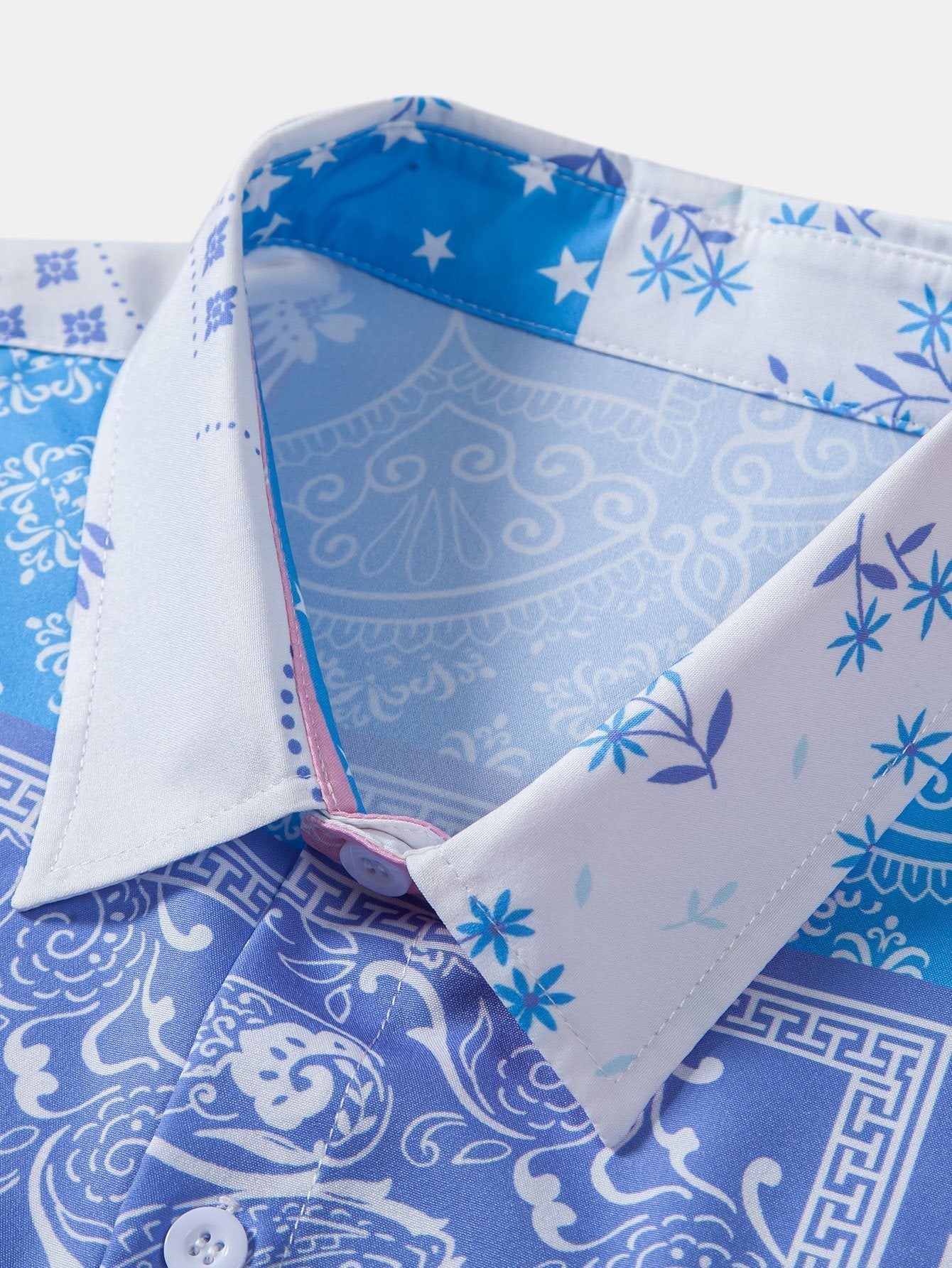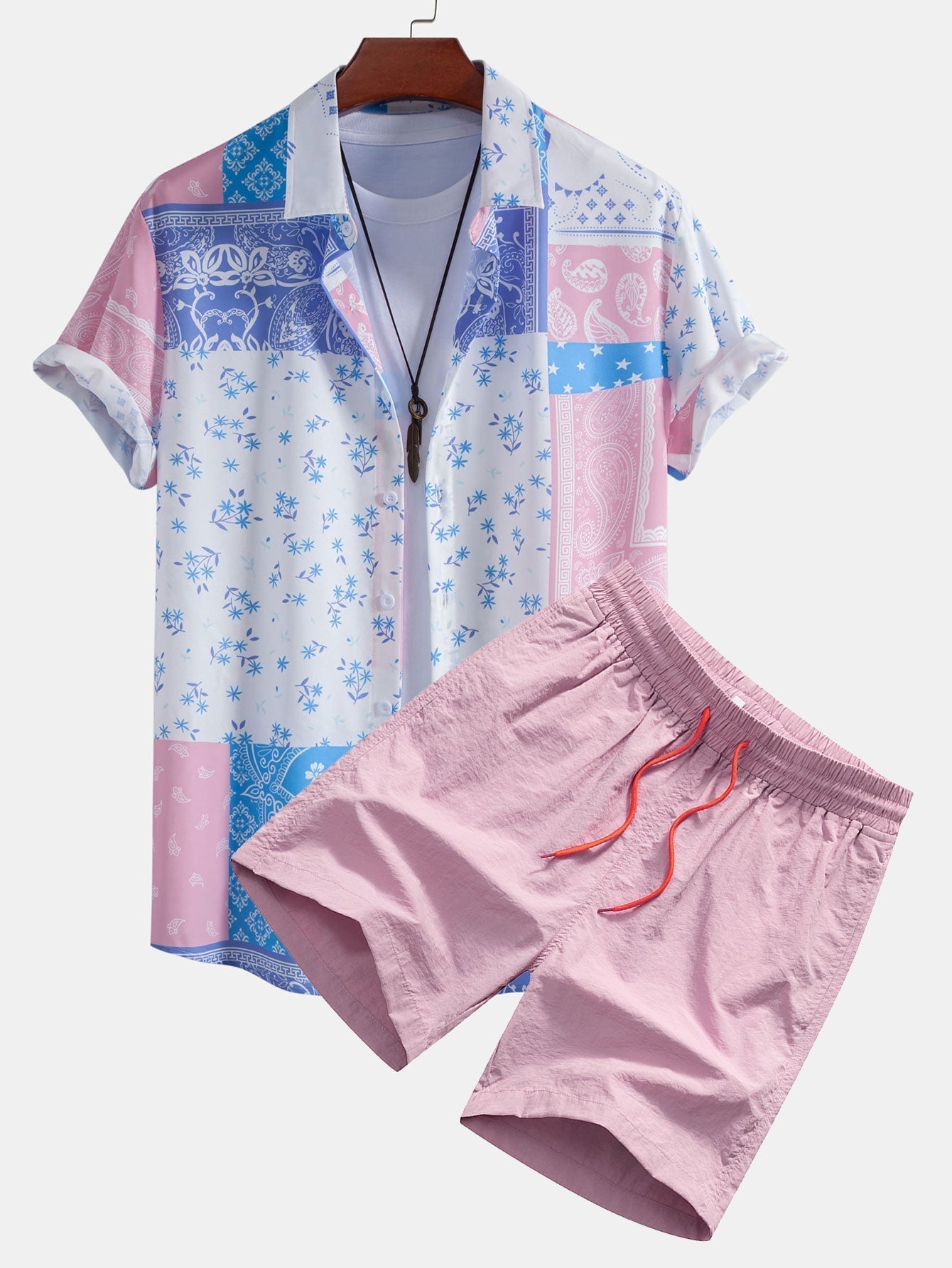 Paisley Floral Print Button Up Shirt & Swim Shorts
